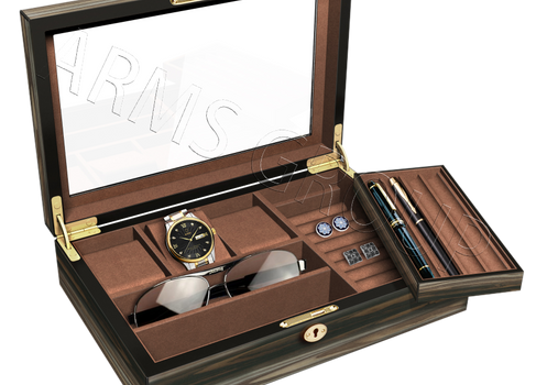 Hi-Gloss Grayish Brown Stripe Men's Jewelry Box With Glass-Top